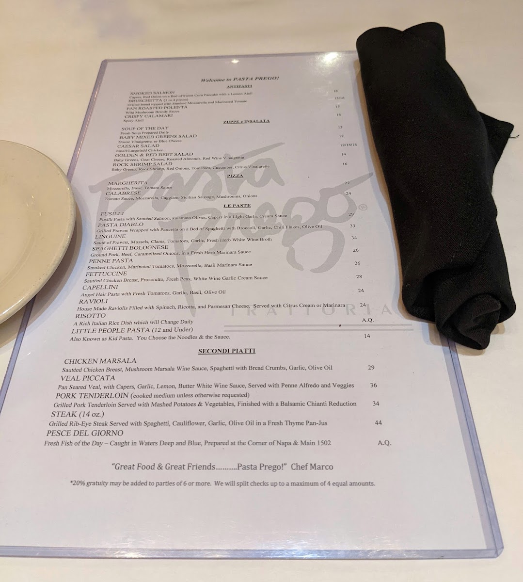 Introducing the Menu at Pasta Prego