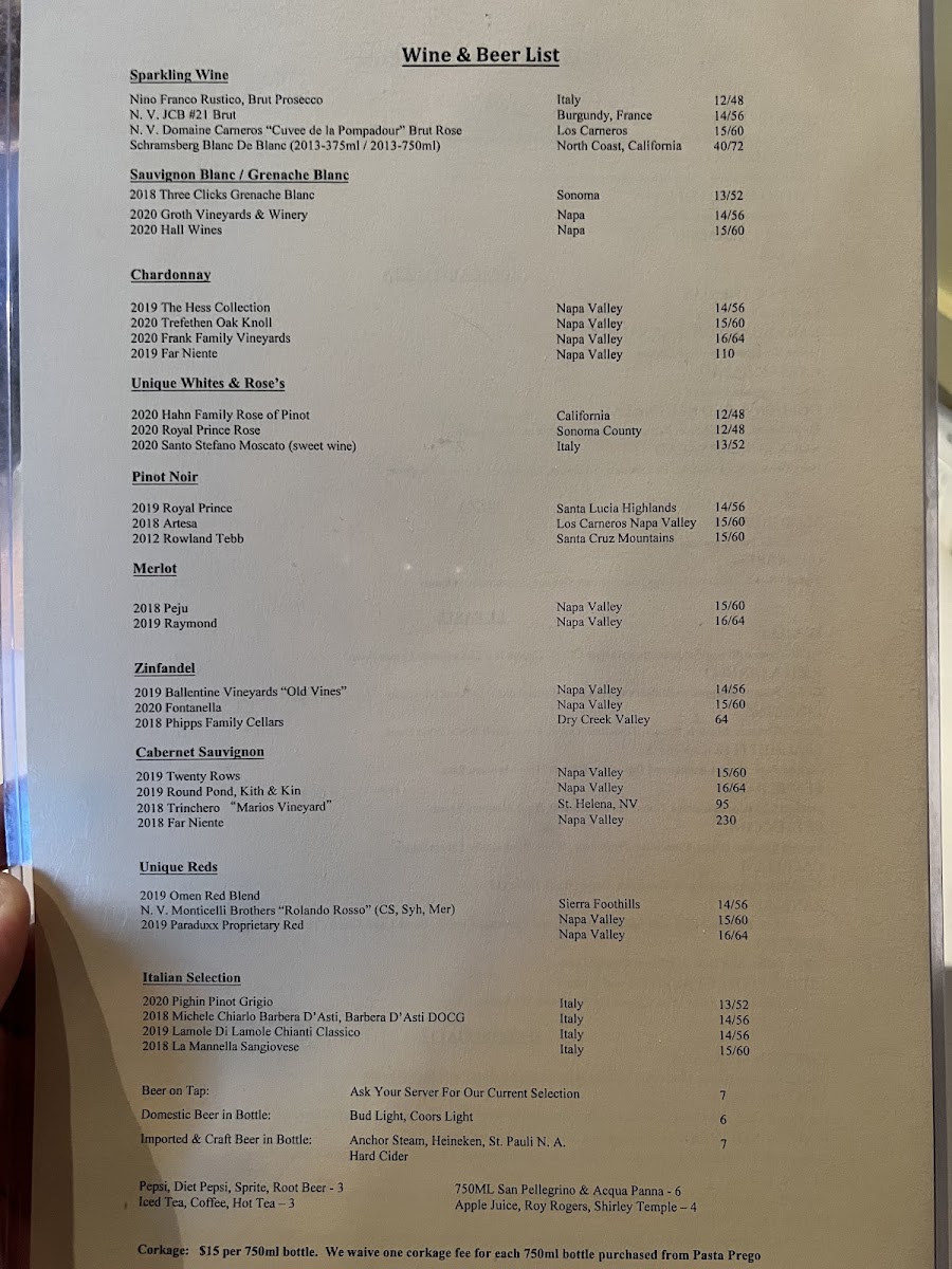 Wine & Beer List - Sparkling Wine